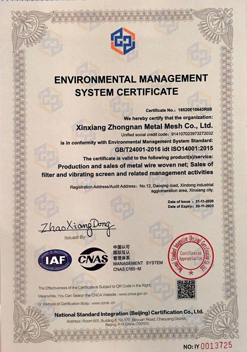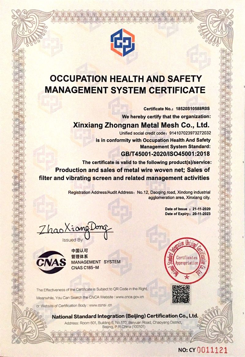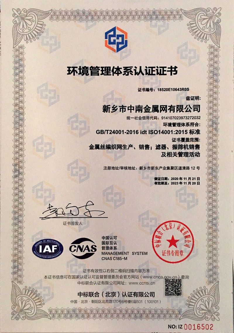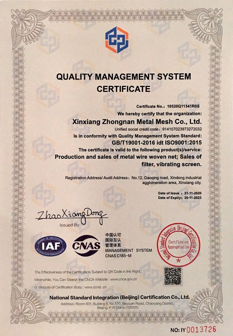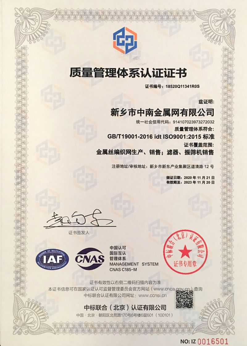 新鄉(xiāng)市中南金屬網(wǎng)有限公司成立于1999 年,公司設(shè)在河南省新鄉(xiāng)市。在過(guò)去的十幾年來(lái),我們堅(jiān)持以嚴(yán)格的管理措施、雄厚的技術(shù)力量、良好的工藝設(shè)施,質(zhì)量上乘、信譽(yù)為上為原則,把樹(shù)立良好的企業(yè)形象為工作宗旨,歷經(jīng)市場(chǎng)的嚴(yán)峻考驗(yàn)并贏得廣大用戶(hù)的一致好評(píng)。金屬絲網(wǎng)編織結(jié)構(gòu)形式有平紋和斜紋兩種方法,嚴(yán)格按照航空軍品標(biāo)準(zhǔn)HB1862—93和標(biāo)準(zhǔn)GB/T5330—2003標(biāo)準(zhǔn),并等效采用國(guó)際標(biāo)準(zhǔn)ISO9044—90標(biāo)準(zhǔn)組織生產(chǎn)。